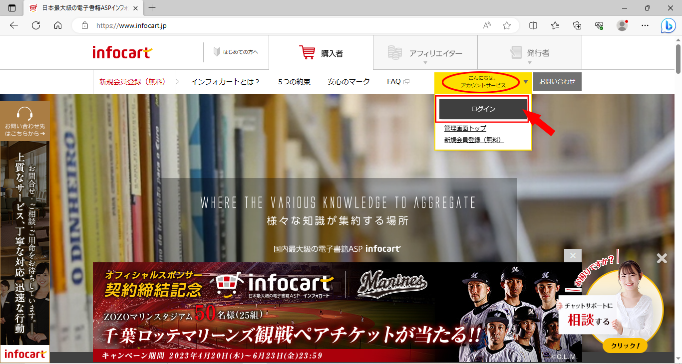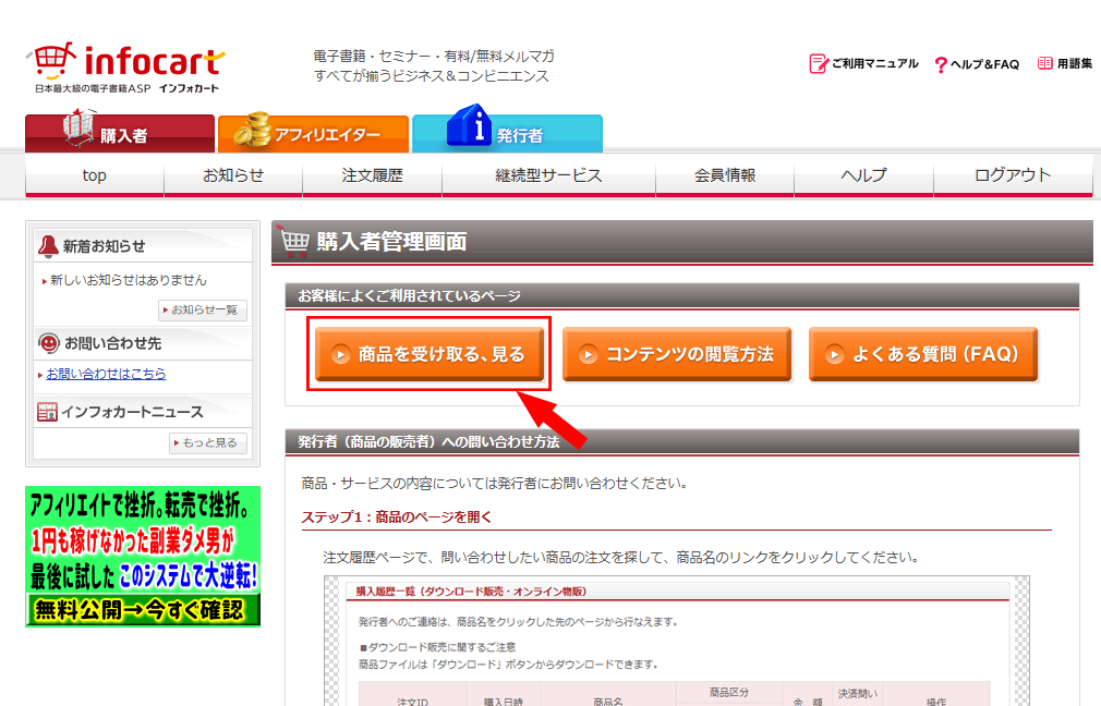 インフォカートの購入者ログイン方法①